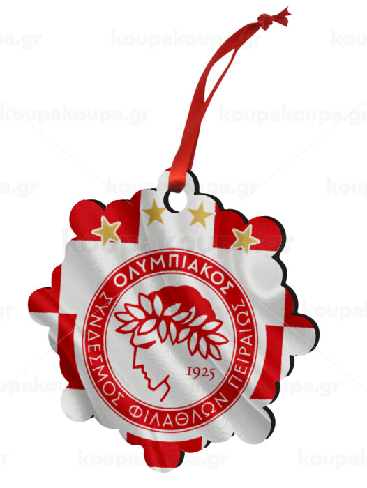 Olympiakos flag, Christmas ornament snowflake wooden 7.5cm