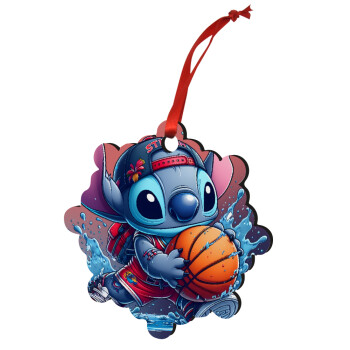 Stitch Basketball, Christmas ornament snowflake wooden 7.5cm
