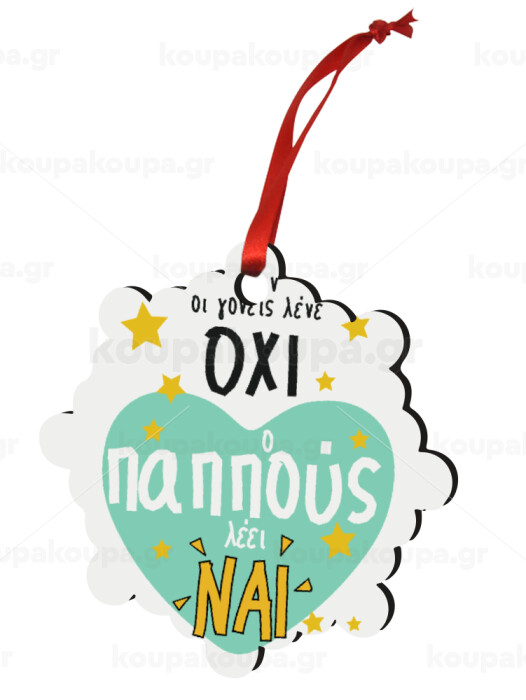 Όταν οι γονείς λένε ΟΧΙ, ο παππούς λέει ΝΑΙ, Christmas ornament snowflake wooden 7.5cm
