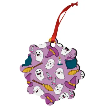 Happy Halloween pink, Christmas ornament snowflake wooden 7.5cm