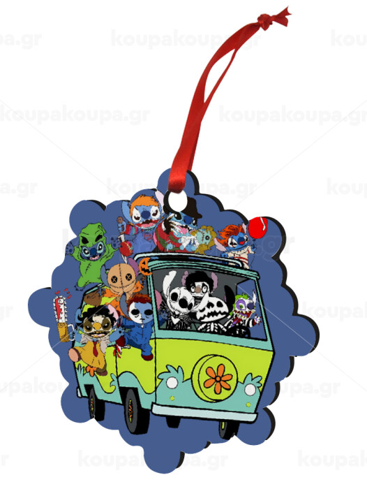 Stitch Halloween scooby car, Christmas ornament snowflake wooden 7.5cm