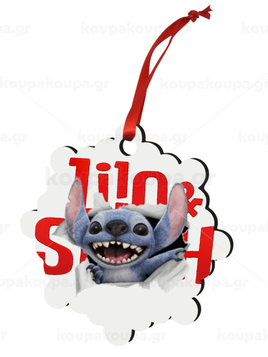 Stitch movie, Christmas ornament snowflake wooden 7.5cm