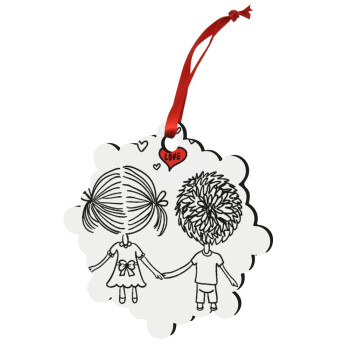 comics hands love, Christmas ornament snowflake wooden 7.5cm
