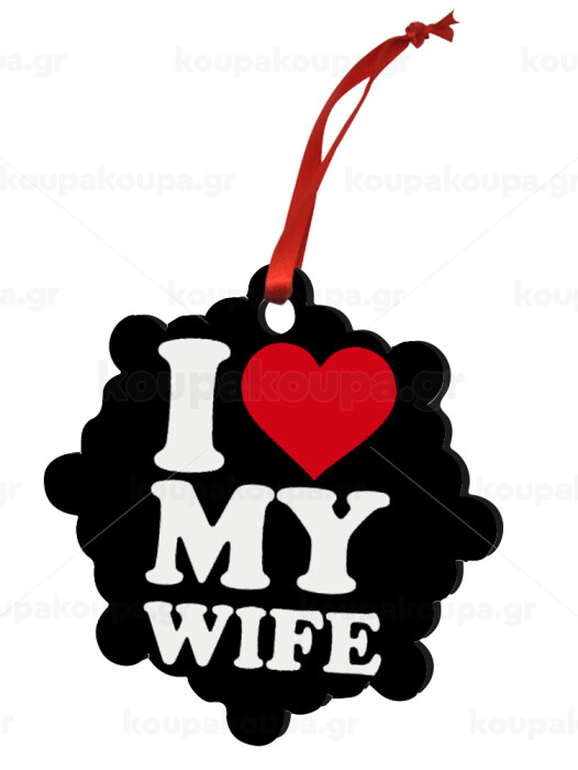 I Love my Wife, Μπρελόκ Ξύλινο τετράγωνο MDF