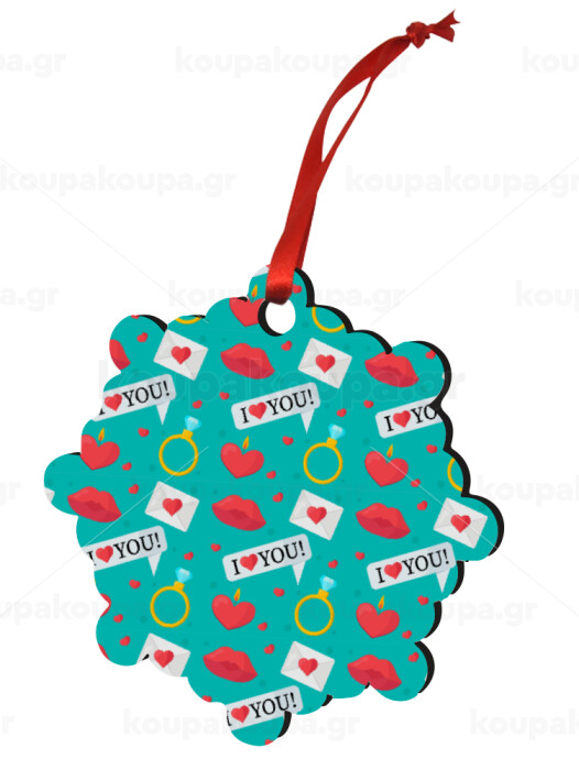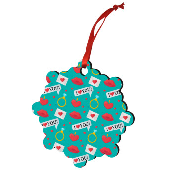 I Love You hearts rings & kiss pattern, Christmas ornament snowflake wooden 7.5cm
