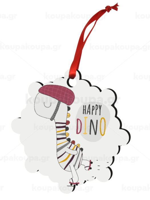 Happy Dino, Μπρελόκ Ξύλινο τετράγωνο MDF