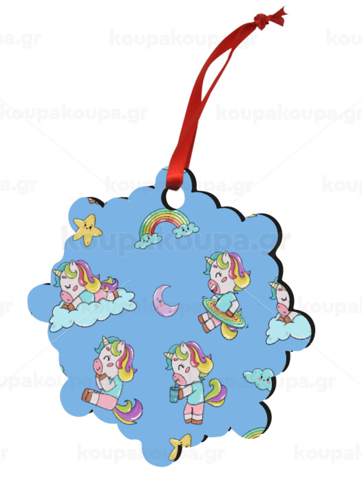 Unicorn pattern, Christmas ornament snowflake wooden 7.5cm