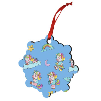 Cute unicorn, Christmas ornament snowflake wooden 7.5cm