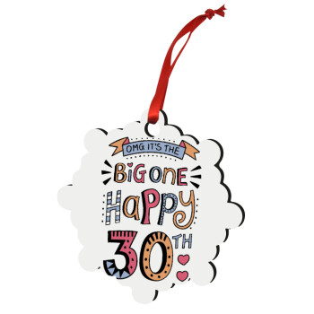 Big one Happy 30th, Christmas ornament snowflake wooden 7.5cm