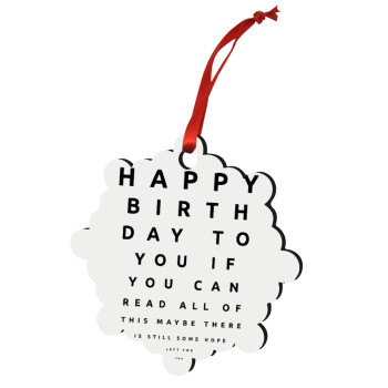 EYE tester happy birthday., Christmas ornament snowflake wooden 7.5cm