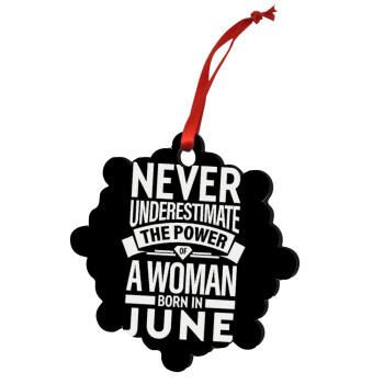 Never Underestimate the poer of a Woman born in..., Christmas ornament snowflake wooden 7.5cm