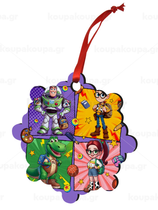 Back to the School Buzz & Friends, Christmas ornament snowflake wooden 7.5cm