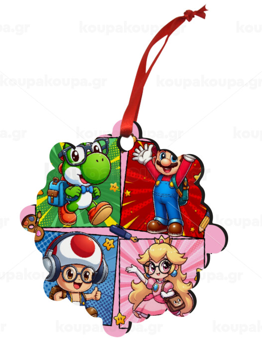 Back to the School Mario & Friends, Christmas ornament snowflake wooden 7.5cm