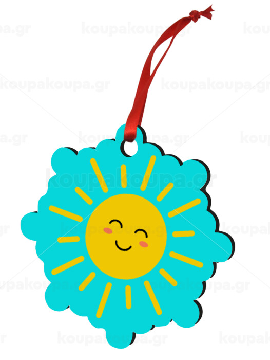 Happy sun, Christmas ornament snowflake wooden 7.5cm