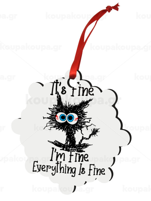 Cat, It's Fine I'm Fine Everything Is Fine, Christmas ornament snowflake wooden 7.5cm