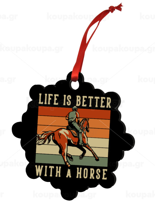 Life is Better with a Horse, Christmas ornament snowflake wooden 7.5cm