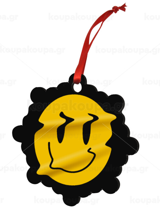 Smile avatar distrorted, Christmas ornament snowflake wooden 7.5cm