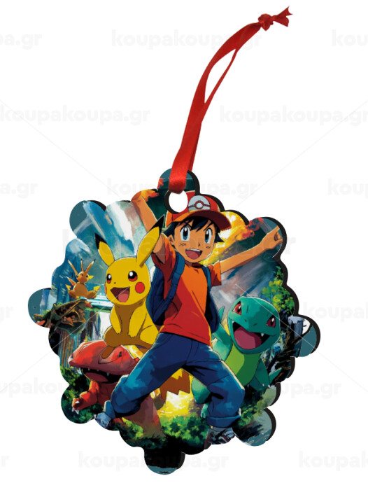 Ash Ketchum & Pikachu, Christmas ornament snowflake wooden 7.5cm