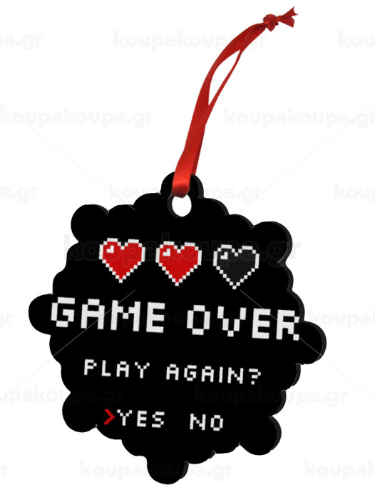 GAME OVER, Play again? YES - NO, Christmas ornament snowflake wooden 7.5cm
