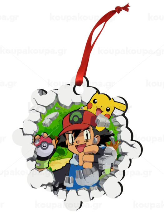 Ash Ketchum & Pikachu, Christmas ornament snowflake wooden 7.5cm