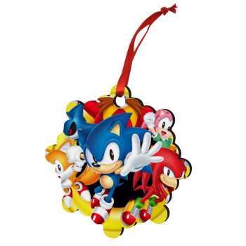 Sonic and friends, Christmas ornament snowflake wooden 7.5cm