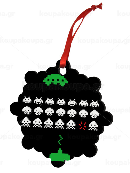 Space invaders, Christmas ornament snowflake wooden 7.5cm