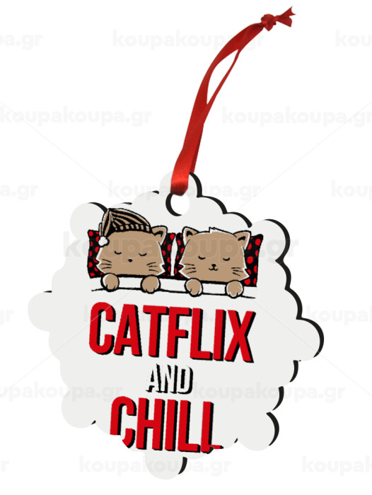Catflix and Chill, Christmas ornament snowflake wooden 7.5cm