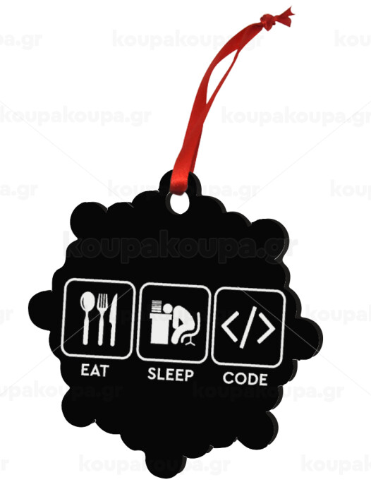 Eat Sleep Code, Christmas ornament snowflake wooden 7.5cm