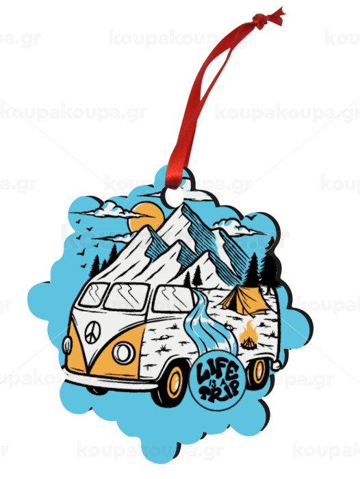Life is a trip, Christmas ornament snowflake wooden 7.5cm