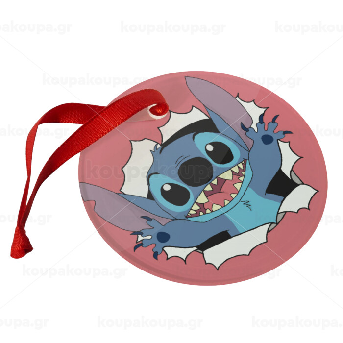 Stitch hello!!!, Christmas ornament glass 9cm