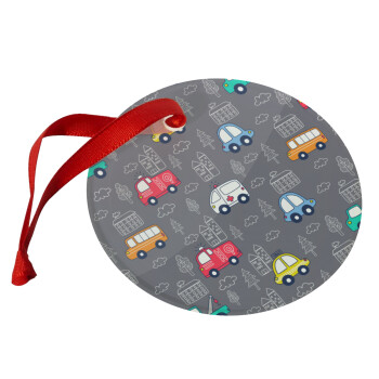 Hand drawn childish set with cars, Christmas ornament glass 9cm