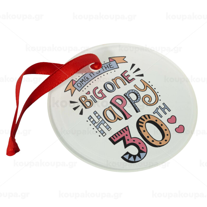 Big one Happy 30th, Christmas ornament glass 9cm