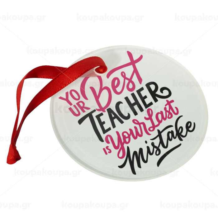 Typography quotes your best teacher is your last mistake, Christmas ornament glass 9cm