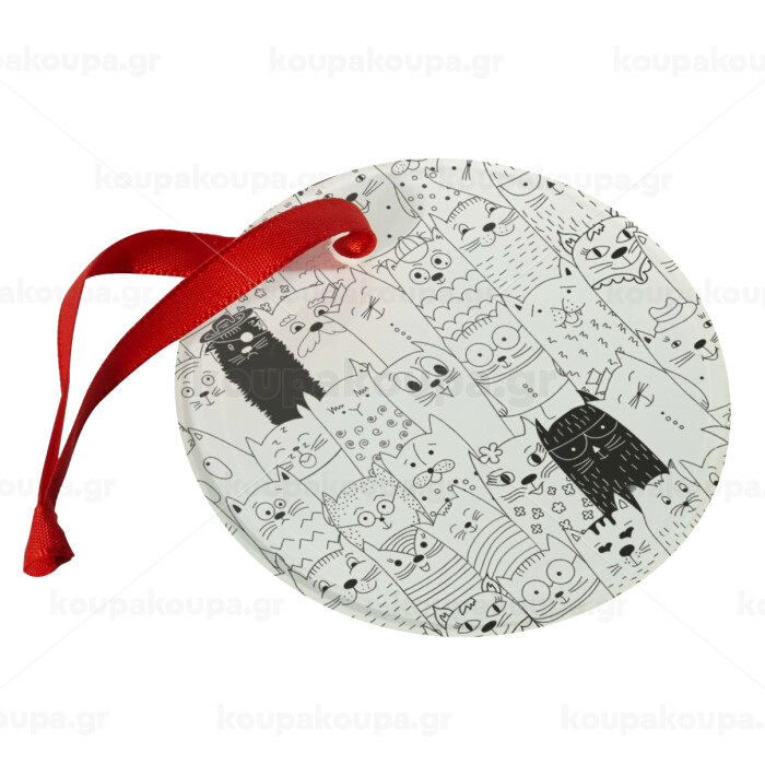 Γάτες γραμμικό σχέδιο, Christmas ornament glass 9cm
