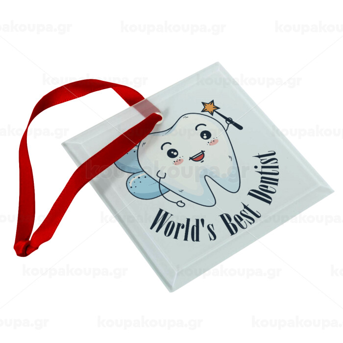 World's Best Dentist, Christmas ornament, glass square ornament 9x9cm