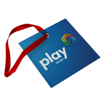 Play by ΟΠΑΠ, Christmas ornament, glass square ornament 9x9cm