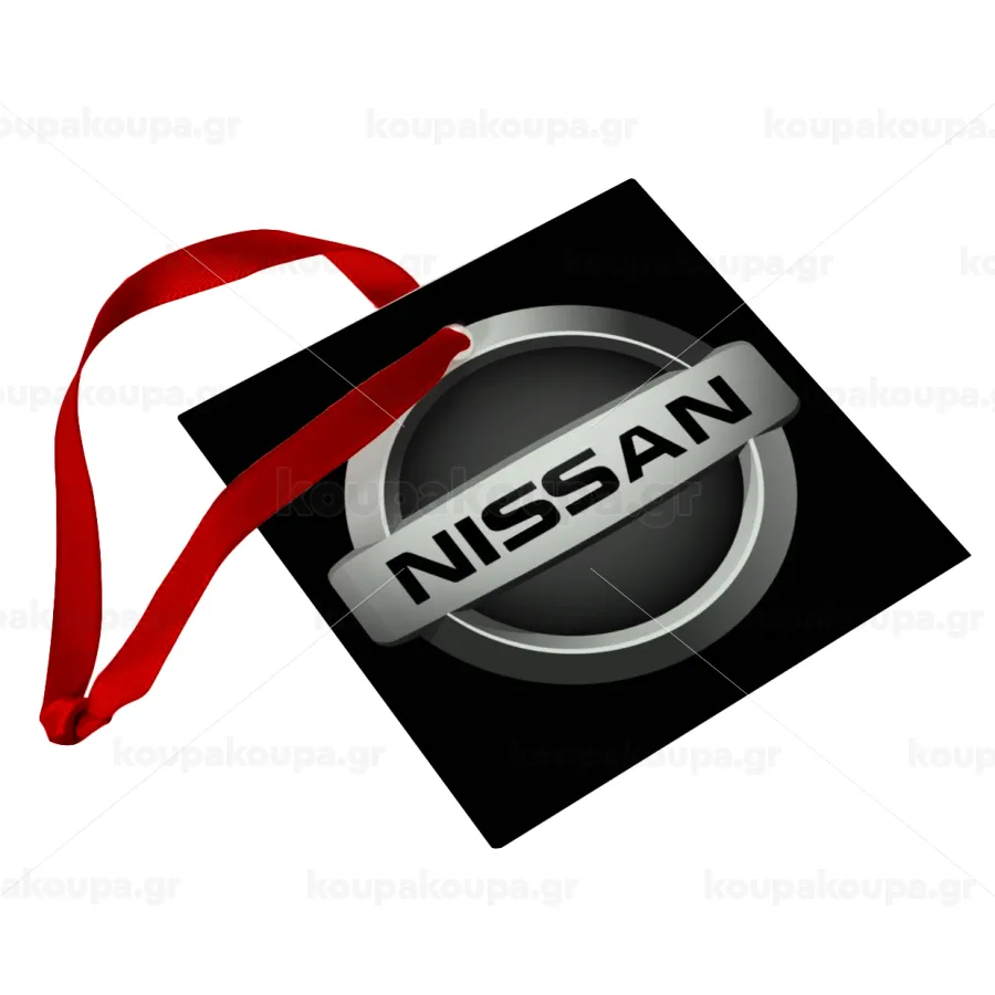 nissan, Christmas ornament, glass square ornament 9x9cm
