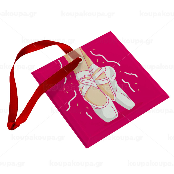 Ballerina shoes, Christmas ornament, glass square ornament 9x9cm