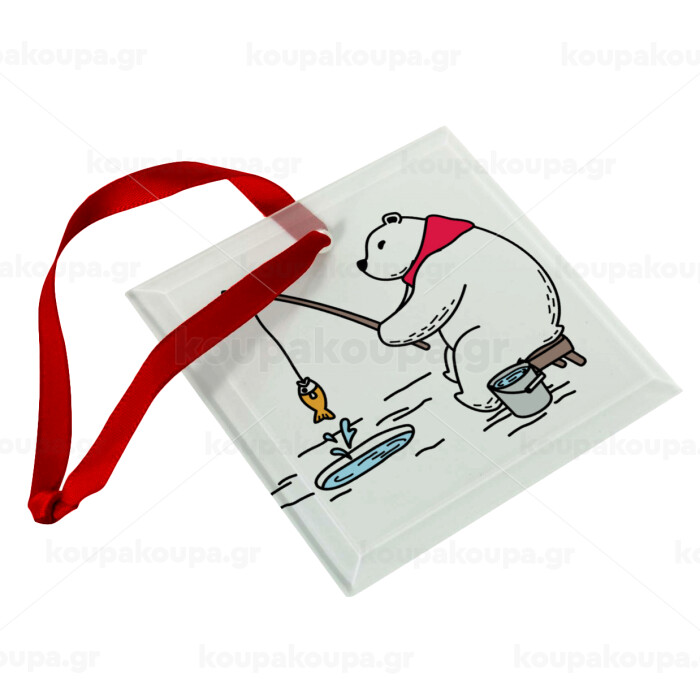 Bear fishing, Christmas ornament, glass square ornament 9x9cm