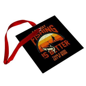 A bad day FISHING is better than a good day at work, Christmas ornament, glass square ornament 9x9cm
