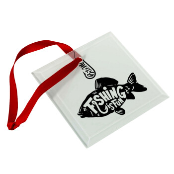 Fishing is fun, Christmas ornament, glass square ornament 9x9cm