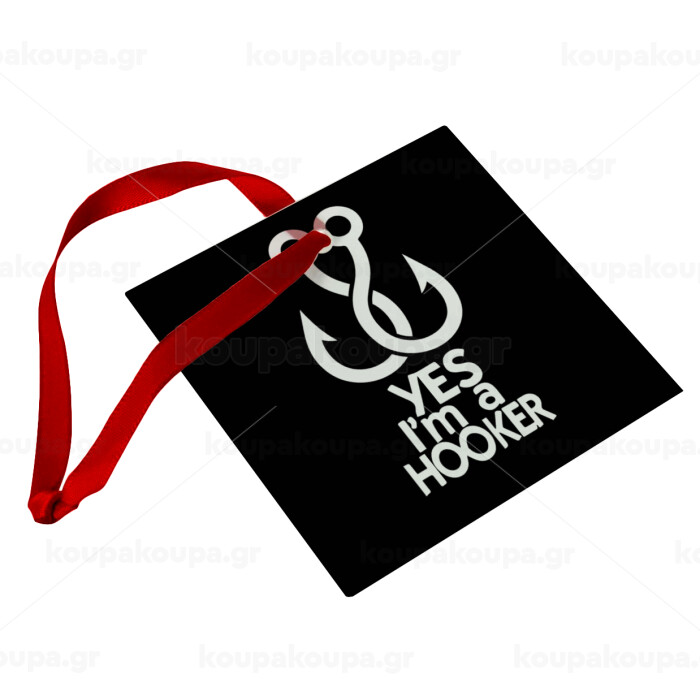 Yes i am Hooker, Christmas ornament, glass square ornament 9x9cm