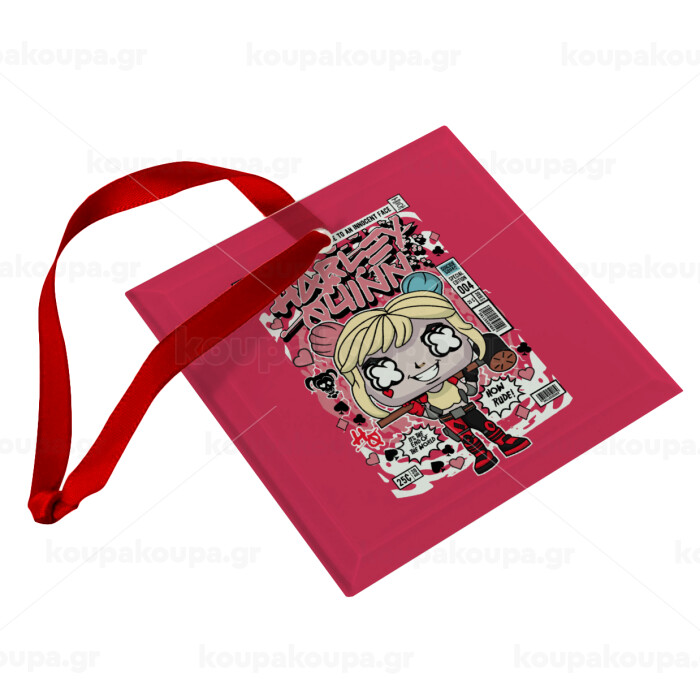 Harley Quinn (Χάρλεϊ Κουίν), Christmas ornament, glass square ornament 9x9cm