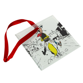 Lucky Luke comic, Christmas ornament, glass square ornament 9x9cm