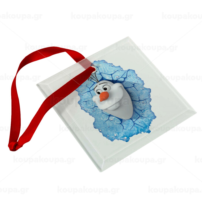 Frozen Olaf, Christmas ornament, glass square ornament 9x9cm