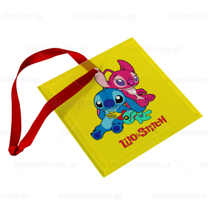 Lilo & Stitch, Christmas ornament, glass square ornament 9x9cm