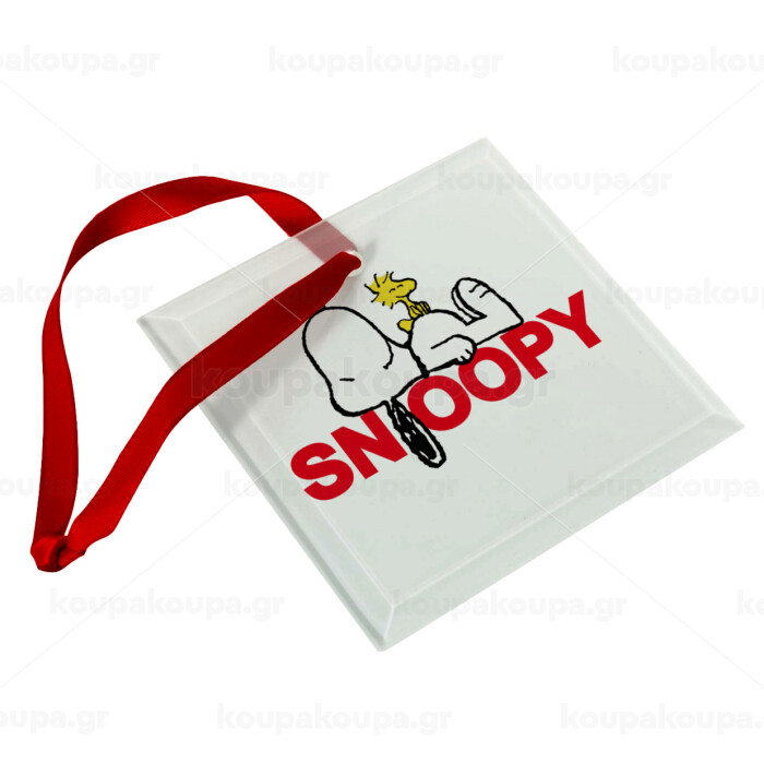 Snoopy sleep, Christmas ornament, glass square ornament 9x9cm
