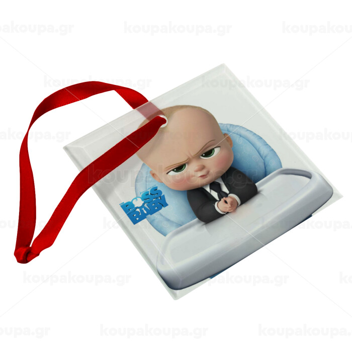 The boss baby, Christmas ornament, glass square ornament 9x9cm