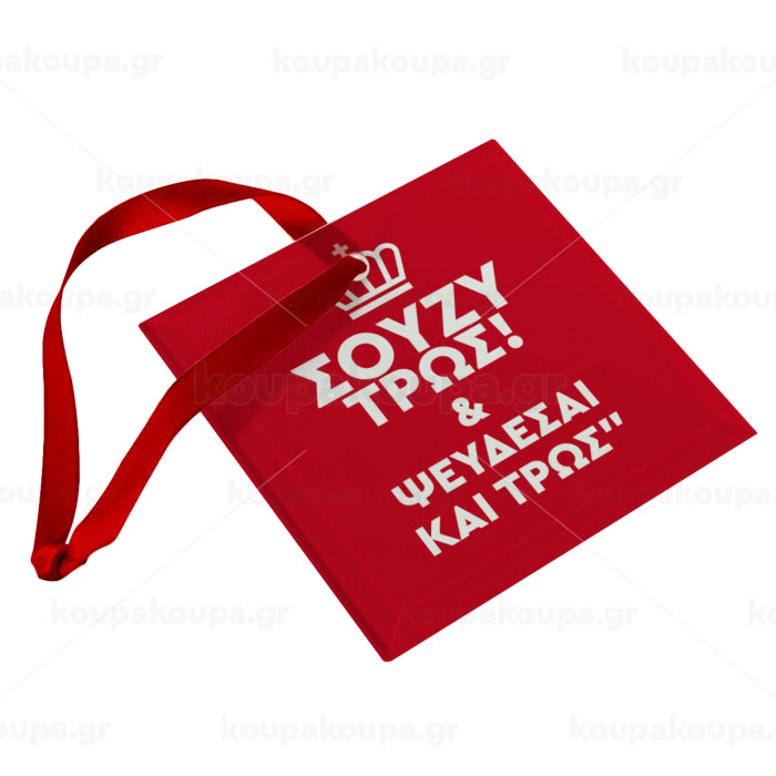 Σούζυ και ψεύδεσαι και τρως, Christmas ornament, glass square ornament 9x9cm