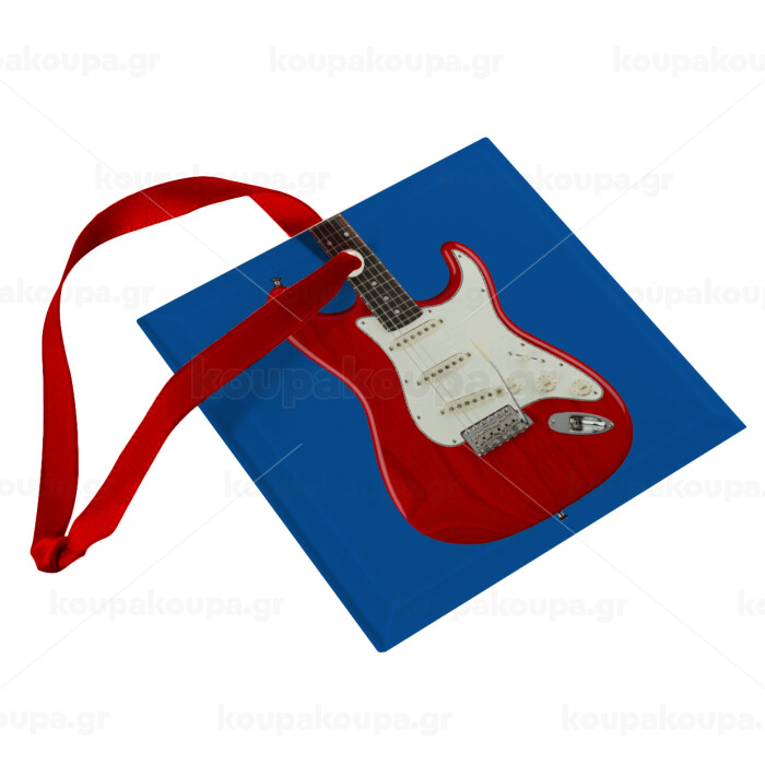 Guitar stratocaster, Christmas ornament, glass square ornament 9x9cm